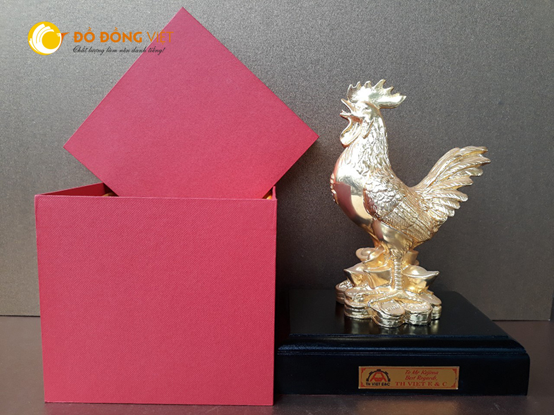 Tượng gà bằng đồng mạ vàng làm quà tặng phong thủy