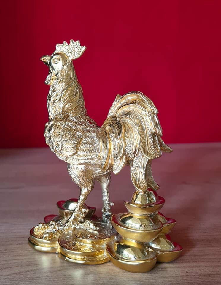 Tượng gà trống bằng đồng đứng trên tiền vàng