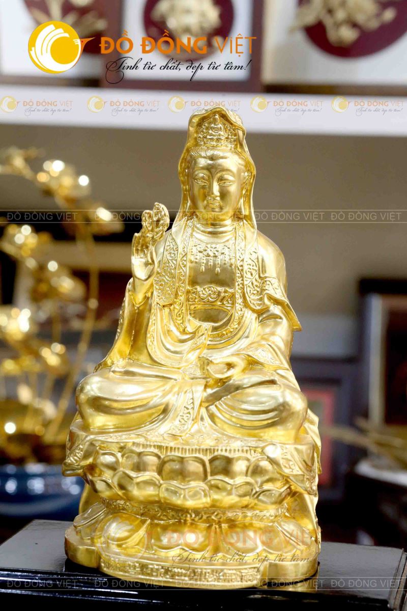 Tượng Quán Thế Âm Bồ Tát bằng đồng dát vàng đẹp tinh xảo
