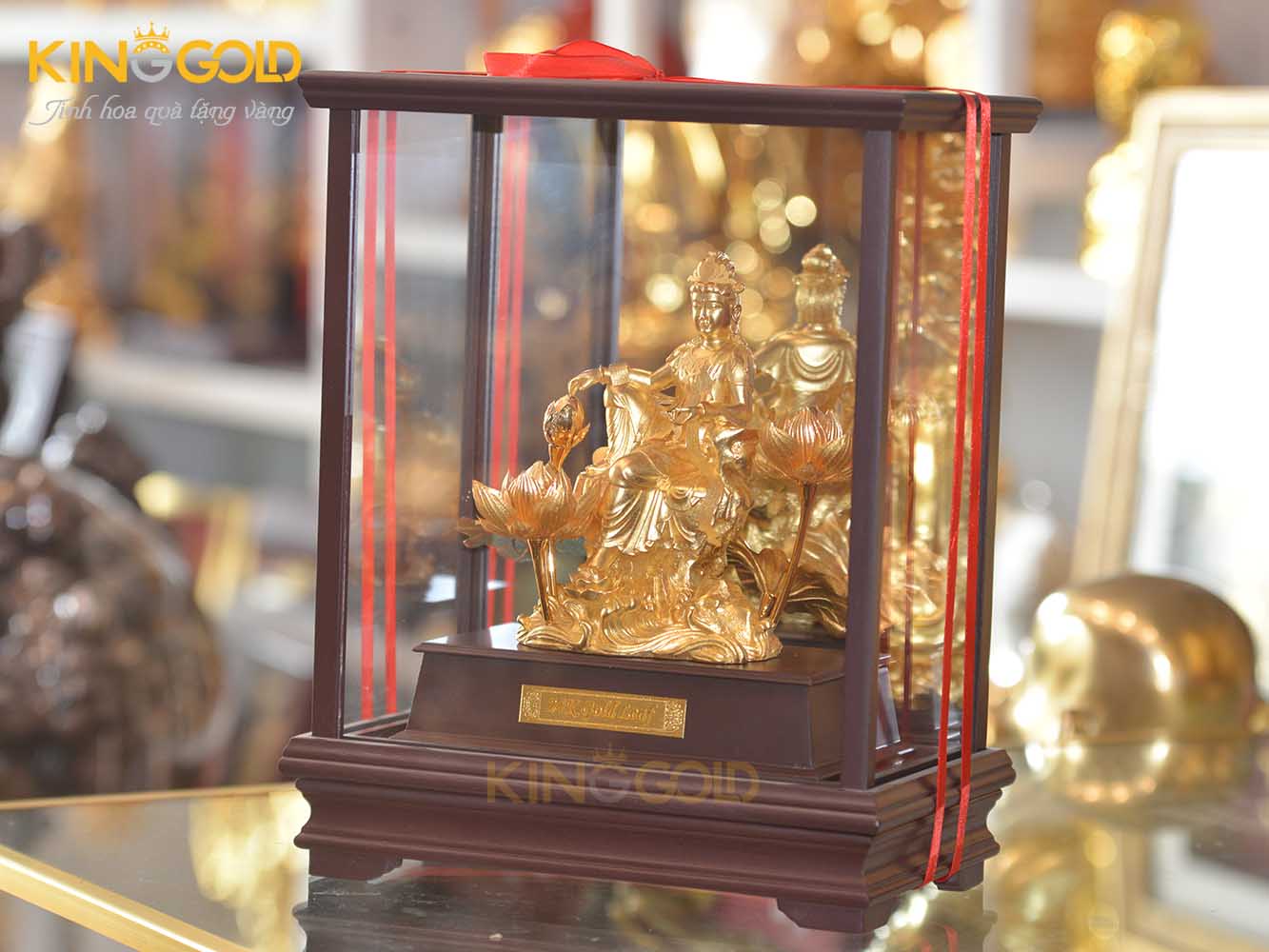 Tượng văn thù bồ tát mạ vàng 24k ngồi tọa thiền trên đầm sen